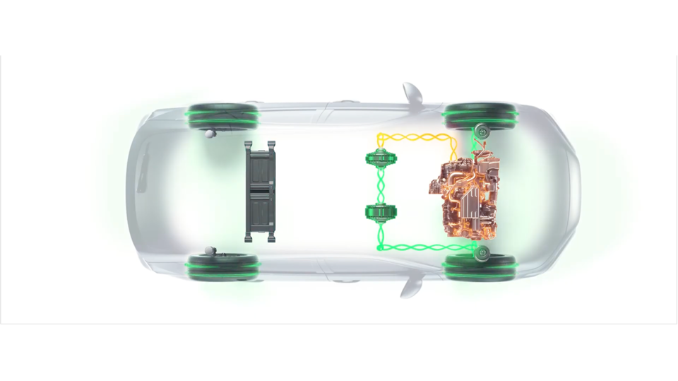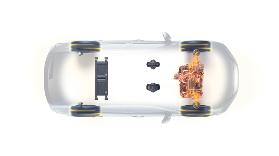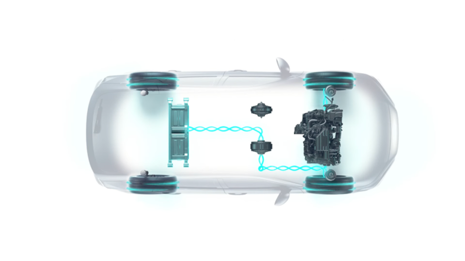 Két villanymotor hajtja, amelyeket a benzinmotor táplál a nagy hatékonyság érdekében.